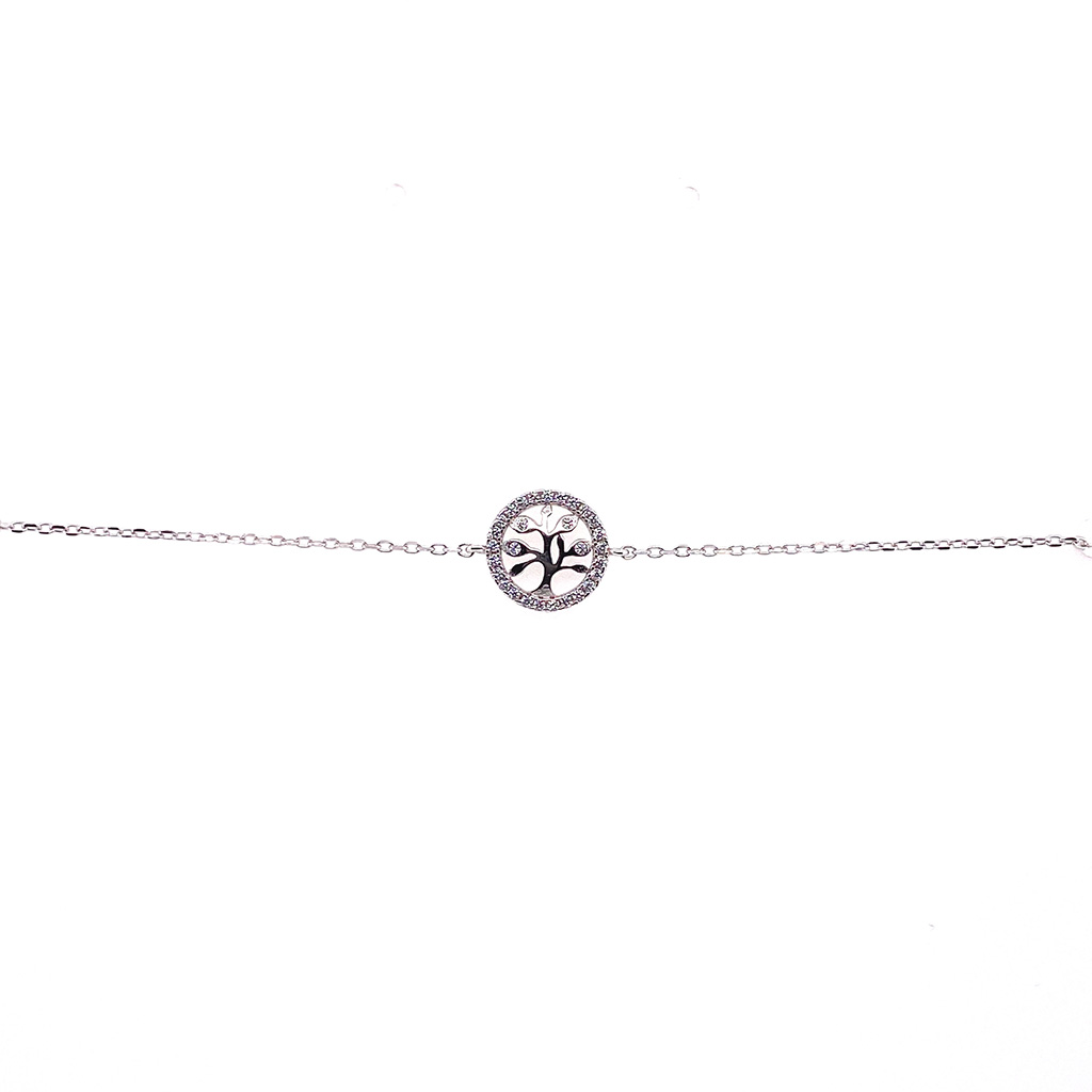 Ασημένιο Βραχιόλι 925 επιπλατινωμένο δέντρο ζωής με λευκά ζιργκόν ζιργκόν