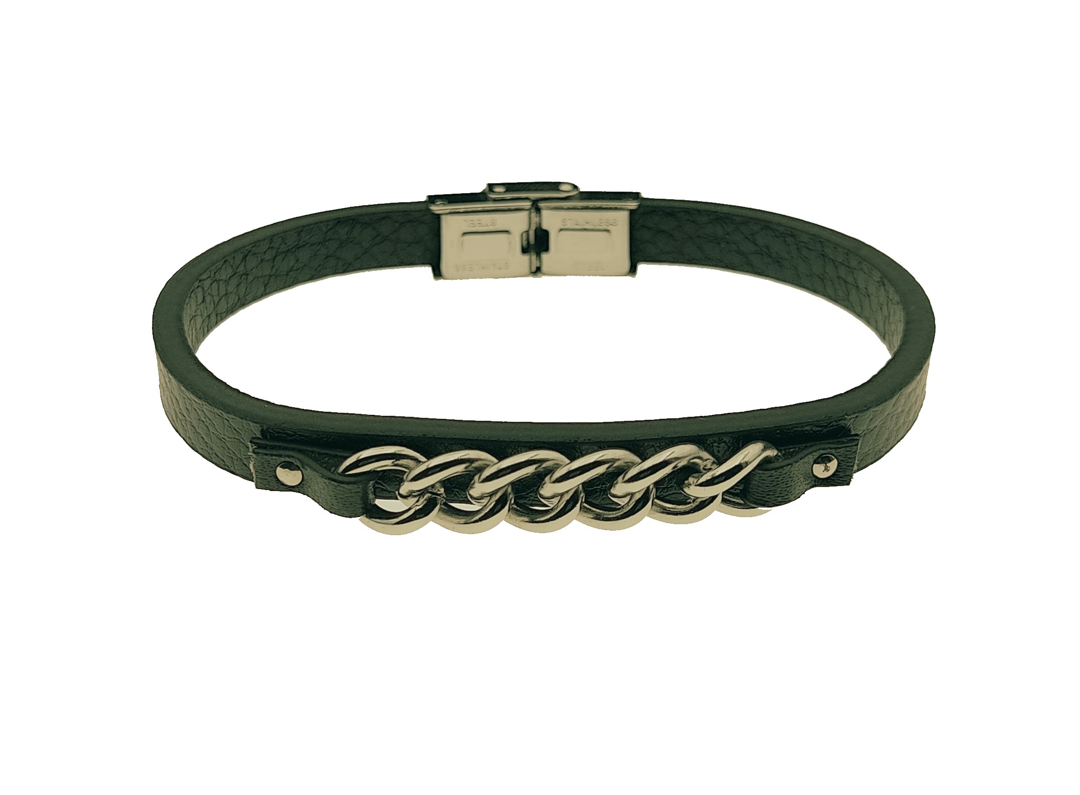 Ανδρικό Βραχιόλι ανοξείδωτο ατσάλι''αλυσίδα''με δέρμα