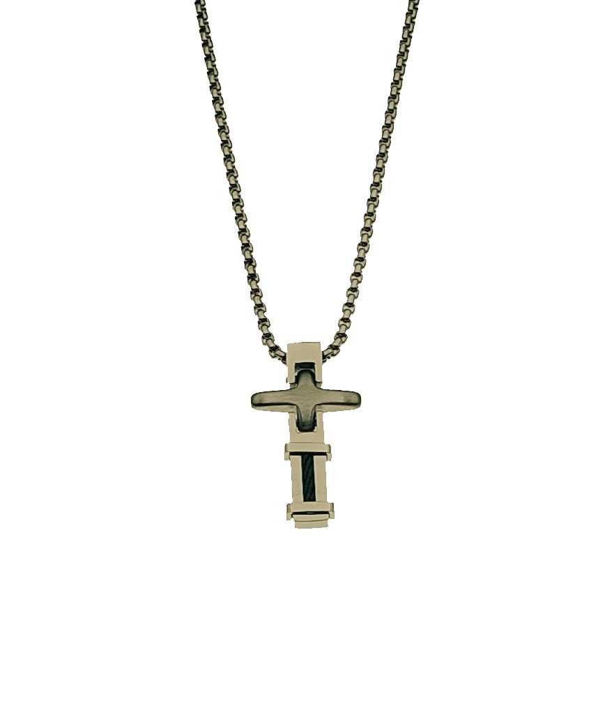 Ανδρικός Σταυρός ανοξείδωτο ατσάλι με μαύρες λεπτομέρειες