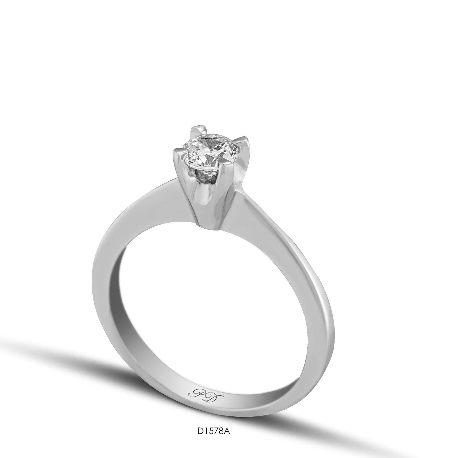 Κλασικό μονόπετρο δαχτυλίδι με στρογγυλό διαμάντι σε κοπή μπριγιάν. Έχει τέσσερα επικλινή δόντια τα οποία ακολουθούν το σχήμα του διαμαντιού προκειμένου να αναδείξουν όλη του την ομορφιά. Μια διαχρονική επιλογή κομψότητας!