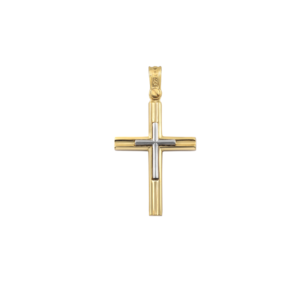 Σταυρός ανδρικός δίχρωμος από κίτρινο χρυσό 14 καρατίων με λευκόχρυσο ένθετο.