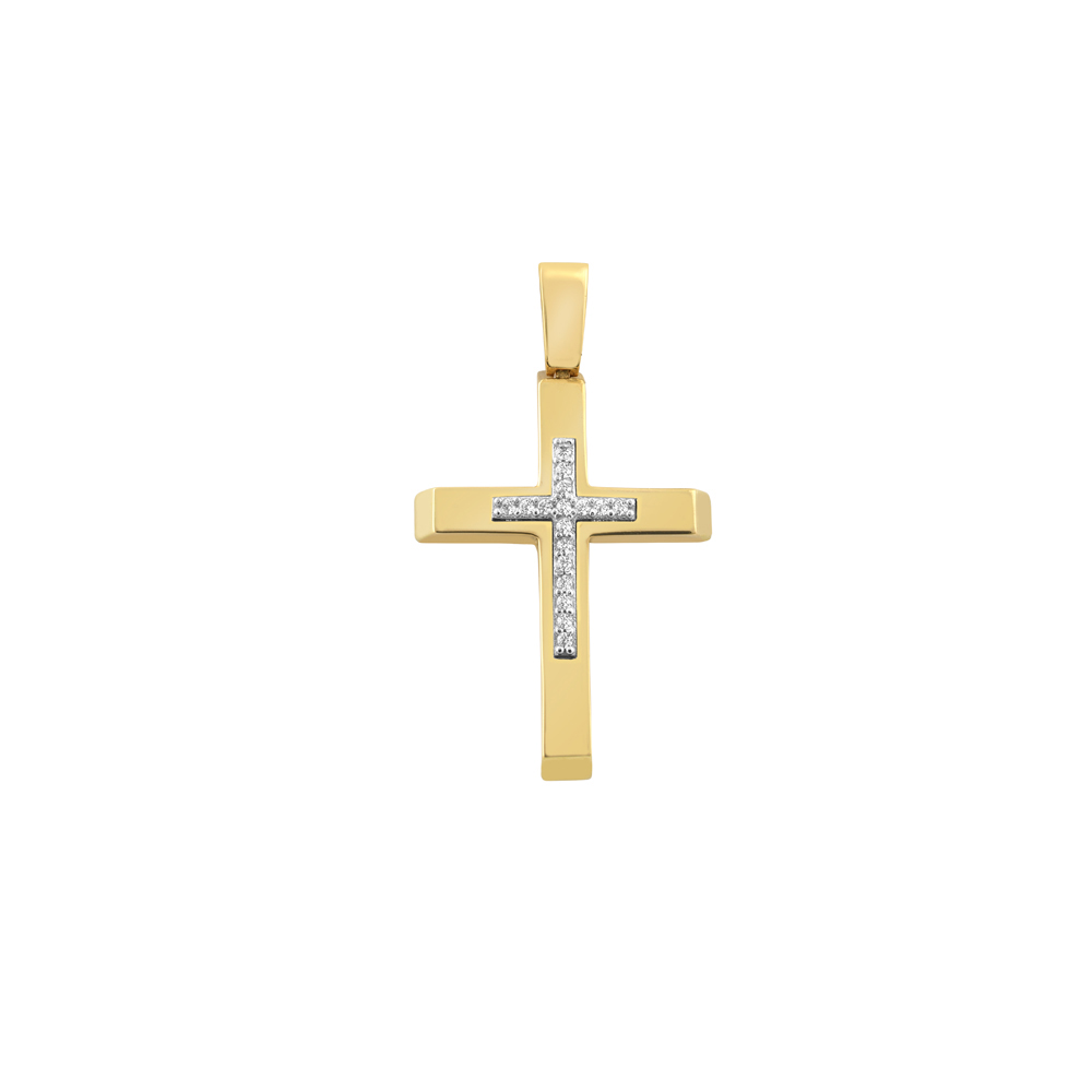 Σταυρός Βάπτισης Δίχρωμος σε Χρυσό Κ14 Με Ζιργκόν Για Κορίτσι