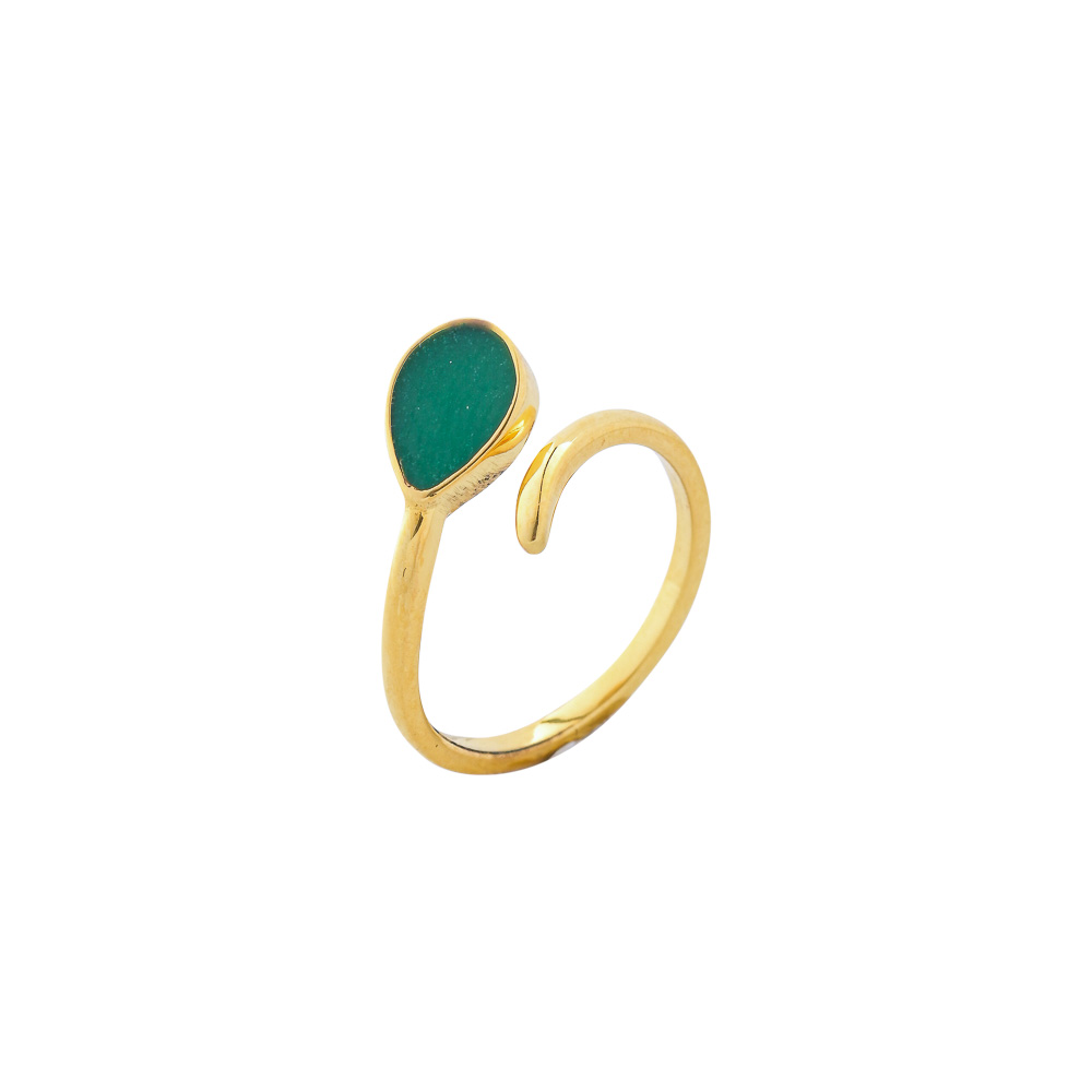 Ασημένιο Δαχτυλίδι 925 επιχρυσωμένο σταγόνα με πλασινο σμάλτο