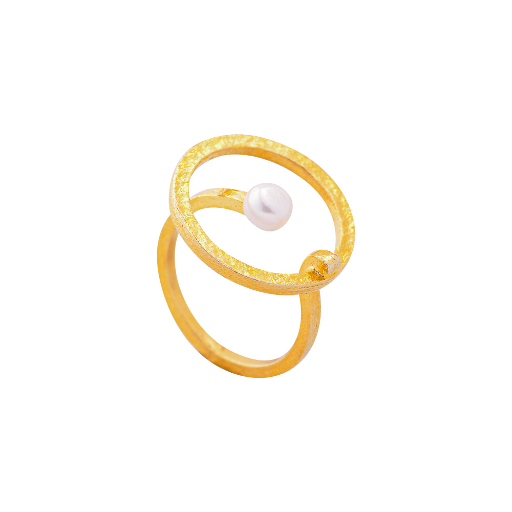 Ασημένιο Δαχτυλίδι 925 επιχρυσωμένο με μαργαριτάρι σε κύκλο