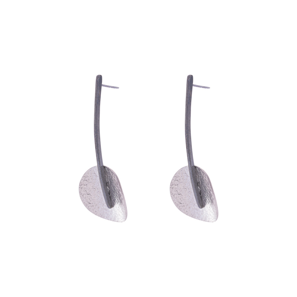Ασημένιο Σκουλαρίκι 925 επιπλατινωμένο ματ με μαύρη λεπτομέρεια
