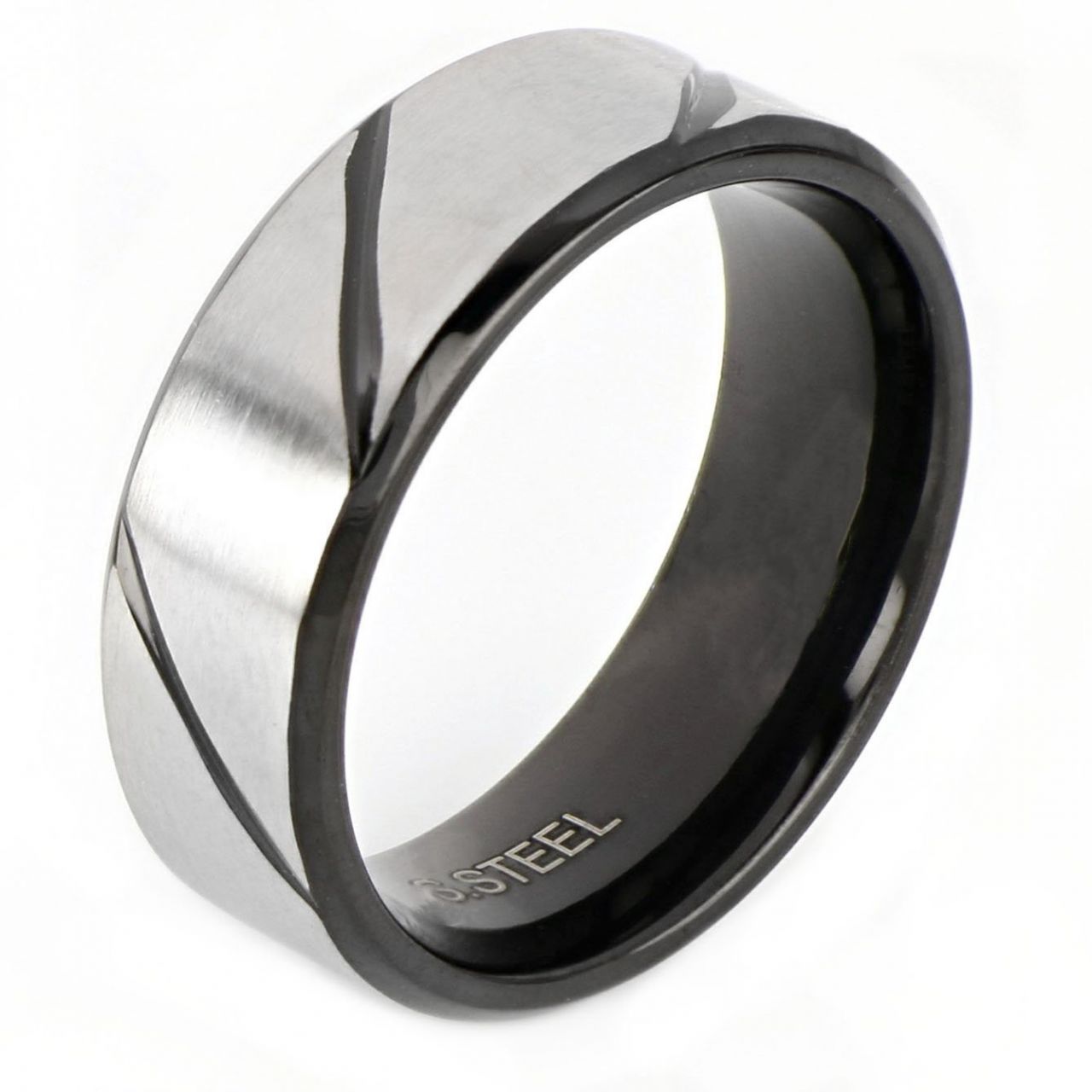 Ανδρικό δαχτυλίδι ατσάλινο με λοξές μαύρες γραμμές