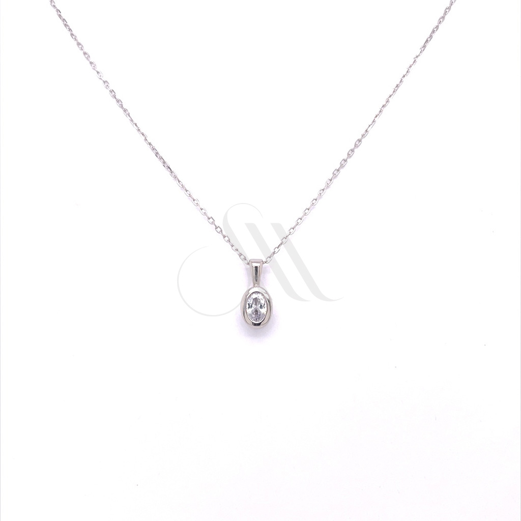 Ασημένιο Κολιέ 925 επιπλατινωμένο μονοπετρο οβαλ